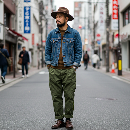 👉 아메카지는 원래 미국 노동자들이 입던 워크웨어(Workwear) 스타일에서 시작되었어요.